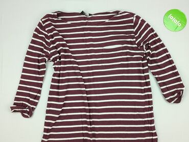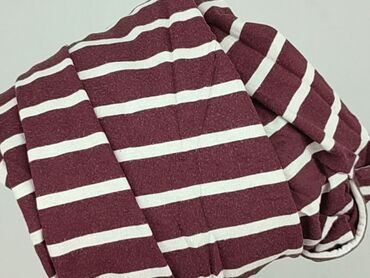Sukienka dzianinowa w prążek, w paski - Kolor: bordowy z białymi, poziomymi paskami - Fason: dopasowany, długość mini/za kolano (w zależności od wzrostu), długie rękawy - Dekolt: półgolf/stójka - M...Stan: