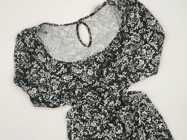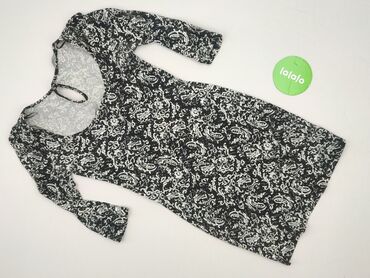 Sukienka F&F w czarno‑biały wzór - Marka: F&F (metka widoczna na zdjęciu) - Kolor: czarny w drobny, biały roślinny print - Fason: lekko rozkloszowana, długość przed kolano - Rękaw: krótki - Dekolt...