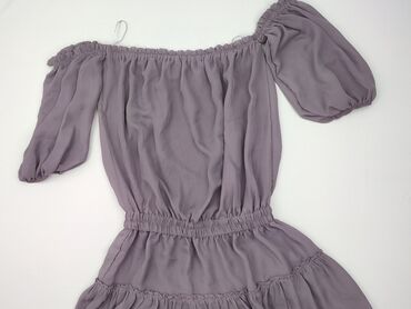 Sukienka damska w drobny, lawendowo-kremowy wzór kwiatowy. - Rozmiar z metki: S (EUR S / US S; 165/88A). - Krój: odcięta w talii z marszczeniem, dolna część z falbaną, długość mini/przed kolano. -...