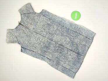 Sukienka jeansowa bez rękawów dla kobiety - Fason: koszulowy, bez rękawów, z kołnierzykiem - Zapięcie: guziki z przodu - Talia: delikatnie marszczona/ściągana gumką, podkreśla sylwetkę - Dół: lekk...