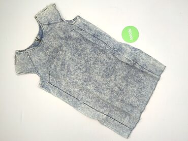 Sukienka jeansowa bez rękawów – rozmiar S - Fason: midi, dopasowana, z podkreśloną talią (wszyty pasek/lamowanie w pasie) - Zapięcie: metalowy zamek błyskawiczny z przodu + napy/metalowe guziki - ...