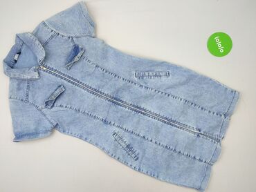 Sukienka dżinsowa z krótkim rękawem - Fason: prosta, lekko dopasowana, długość przed kolano - Zapięcie: długi, metalowy zamek błyskawiczny na przodzie (od dekoltu do dołu) - Dekolt: okrągły - Mate...