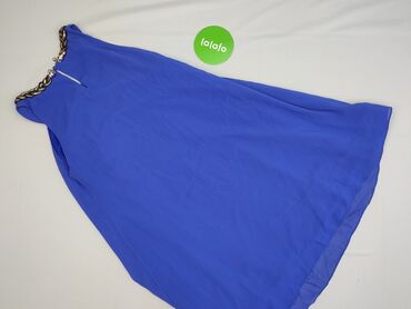 Sukienka damska koktajlowa w kolorze kobaltowym. - Fason: ołówkowy, bez rękawów, z okrągłym dekoltem - Długość: przed kolano (midi/mini w zależności od wzrostu) - Detal: efektowna, asymetryczna fa...Stan: