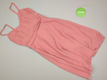 Sukienka koktajlowa na ramiączkach, pastelowy róż (blady pudrowy róż). - Krój: mini, dopasowana góra z pionowymi zakładkami, szeroki pas w talii, dół z marszczeniami i drapowaniem po bokach. - Tył:...Stan: