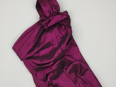 Sukienka koktajlowa w kolorze głębokiego fioletu. - Fason: dopasowany, z marszczeniami wzdłuż przodu i tyłu podkreślającymi sylwetkę - Długość: przed kolano - Dekolt: serce z lekkim drapowaniem; m...