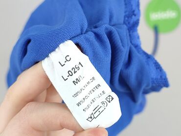 Sukienka damska z długim rękawem, rozmiar L. - Fason: kopertowy dekolt w serek, delikatnie odcięta w pasie, lekko rozkloszowany dół z falbaną. - Wzór: granatowo-niebieski nadruk w drobne, nieregula...Stan: