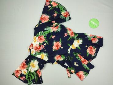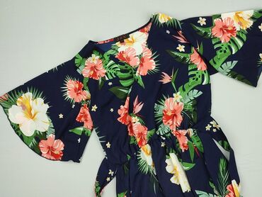 Sukienka kopertowa w tropikalny wzór - Fason: kopertowy/zawiązywany w talii, z dekoltem w kształcie V - Długość: mini - Rękawy: 3/4 z delikatnie rozszerzanymi mankietami - Tkanina: lekka, zwiewna,...Stan: