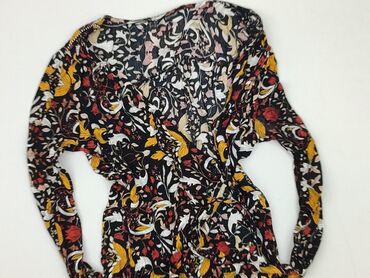 Sukienka BODYFLIRT, rozmiar S (EUR 36/38). - Fason: ołówkowa, kopertowa góra z krótkim rękawem, taliowana. - Kolorystyka: czarna góra; dół czarny z beżowo‑złotym geometrycznym wzorem łańcuszków. -...