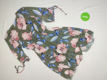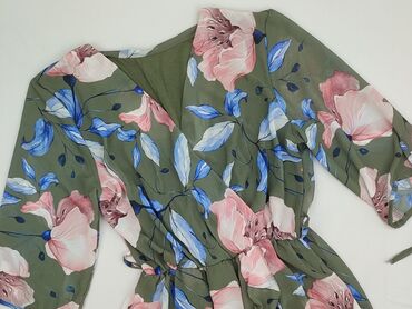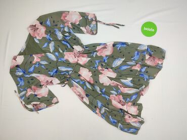 Sukienka w kwiaty – rozmiar M - Krój: kopertowy dekolt w serek, zaznaczona talia z elastyczną gumką, lekko rozkloszowany dół. - Rękawy: krótkie, swobodnie opadające. - Długość: do kolan (mini/midi...