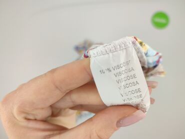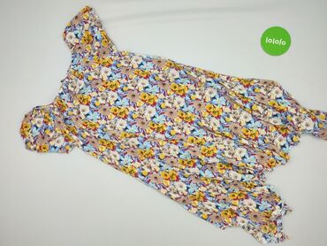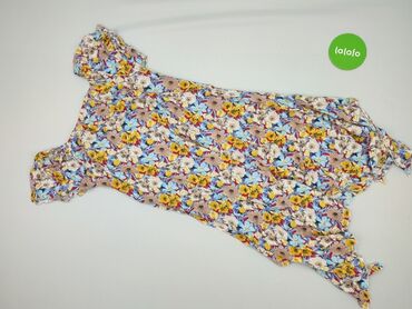Sukienka damska z krótkim rękawem, ozdobiona wzorem w drobne kwiaty. Posiada dekolt w kształcie litery V oraz lekko marszczoną talię, która delikatnie podkreśla sylwetkę. Wielokolorowy wzór, dominu...