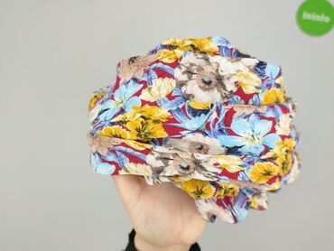 - Wzór: gęsty nadruk kwiatowy w odcieniach żółci, niebieskiego, beżu i bieli na czerwonym tle