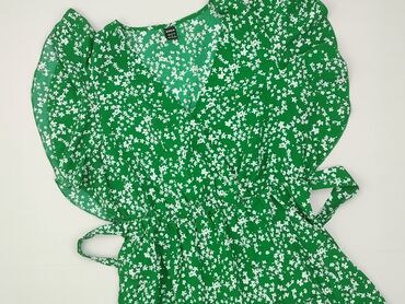 Sukienka damska SHEIN - Fason: kopertowy dekolt z marszczeniem na przodzie, talia lekko podkreślona, dół z falbanami tworzącymi zwiewną, rozkloszowaną sylwetkę. - Rękawy: krótkie, szerokie (motylk...