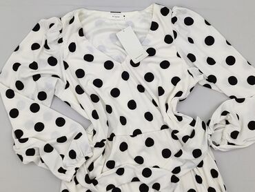 Sukienka damska RESERVED w grochy - Model: midi/maxi z kopertowym dekoltem V - Kolor/pattern: biała w duże czarne kropki (polka dots) - Rękaw: długi, zakończony delikatną gumką - Fason: wiązanie w...