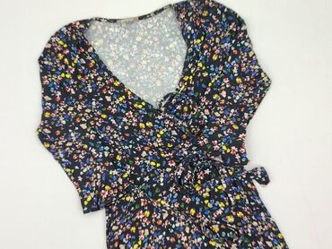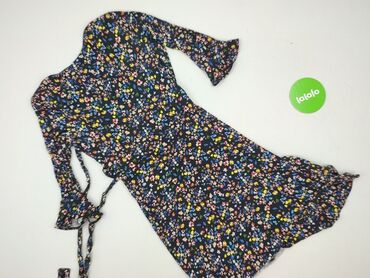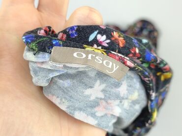Sukienka ORSAY w kwiaty, rozmiar EU 42 - Fason: kopertowy z krzyżującym się dekoltem w kształcie V, odcięta w talii, lekko rozkloszowany dół; krótkie, delikatnie bufiaste rękawki. - Wzór: drobne k...