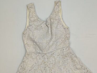 Sukienka koktajlowa Eva & Lola, rozmiar S. - Kolor: jasny beż/ecru. - Fason: kopertowy dekolt w kształcie litery V z przodu, szeroki pas pod biustem podkreślający talię. - Dół: obficie marszczony, ...