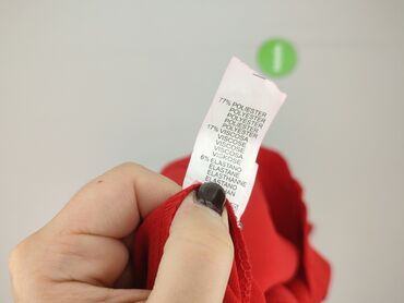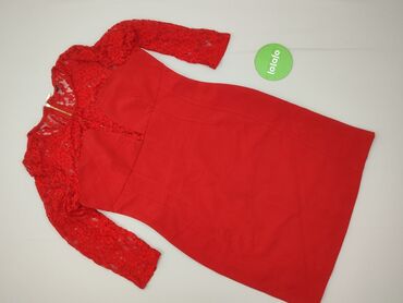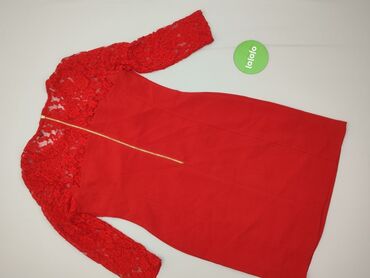 Czerwona sukienka damska Home, rozmiar S. - Fason: ołówkowy, przylegający, długość midi/przed kolano - Dekolt okrągły - Koronkowe wstawki na ramionach i górnej części pleców w kwiatowy wzór - Krót...