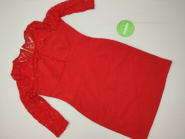 Czerwona sukienka z koronką, rozmiar S - Krój: ołówkowy, długość za kolano - Rękawy: długie - Dekolt: półokrągły z efektowną czarną koronką na ramionach i górnej części przodu/tyłu - Zapięcie: dłu...