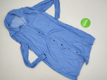 Koszula/sukienka koszulowa damska, jasnoniebieska - Fason: prosta, zapinana na całej długości na guziki w kolorze rogu (front). - Rękaw: krótki z podwiniętą listwą. - Kołnierzyk: klasyczny. - Dług...