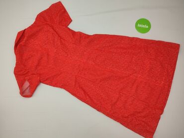 Czerwona sukienka koszulowa midi z krótkim rękawem.