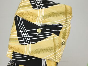 - Wzór: geometryczny/abstrakcyjny – czarne i musztardowe pola z białymi liniami
