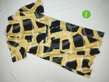 Idealna jako uniwersalna sukienka na co dzień – można nosić luźno lub przewiązać paskiem (brak paska w zestawie widocznym na zdjęciach). Kolorystyka łączy czerń, odcienie złamanej żółci i biel. Rozmiar z metki: M.