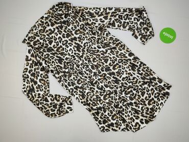 Sukienka koszulowa w panterkę - Rozmiar: XL (na metce) - Fason: koszulowy, lekko rozkloszowany dół, zaokrąglony brzeg - Rękaw: 3/4 z możliwością podpięcia (pasek z guzikiem) - Dekolt: V z krótką l...