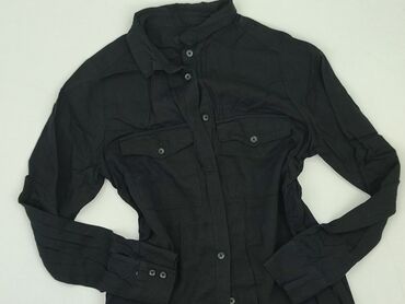 Koszula damska Sinsay - Kolor: czarny - Rozmiar z metki: M - Fason: luźny, zapinany na guziki z przodu - Kołnierzyk klasyczny - Długie rękawy z mankietami na guziki; możliwość podpięcia rękawów (p...