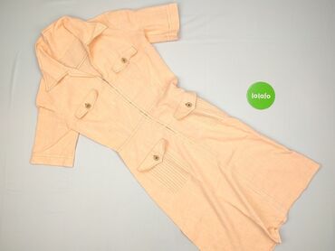 Sukienka koszulowa midi w kolorze brzoskwiniowym. - Fason: rozkloszowana, z doszywanymi falbanami na dole - Zapięcie: rząd guzików z przodu do linii talii - Kołnierzyk koszulowy - Rękawy 3/4 z del...Stan: