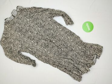 Sukienka Promod – dzianinowa, ołówkowa, z krótkim rękawem. - Fason: prosta/ołówkowa, sięgająca okolicy kolan, lekko dopasowana w talii. - Wzór: drobna pepitka w kolorach czerni, bieli i niebieskie...