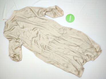 Beżowa sukienka koszulowa midi - Fason: koszulowy, zapinana na guziki z przodu - Kołnierz stójka, krótkie rękawy z delikatnym marszczeniem - Pasek do przewiązania w talii + szlufki - Kieszenie: 2 ...