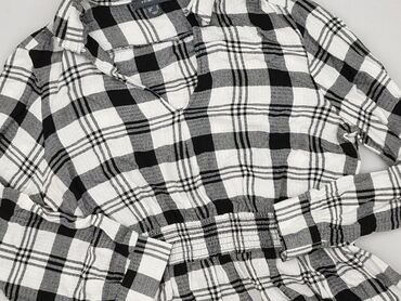 Ta sukienka damska w kratę Primark w odcieniach czerni, bieli i beżu to stylowy i wygodny element garderoby. Sukienka ma dekolt w kształcie litery V z zapięciem na guziki, długie rękawy z bufiastym...