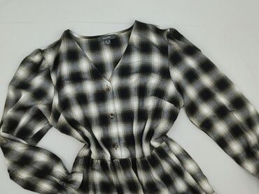 Ta sukienka damska w kratę Primark w odcieniach czerni, bieli i beżu to stylowy i wygodny element garderoby. Sukienka ma dekolt w kształcie litery V z zapięciem na guziki, długie rękawy z bufiastym...
