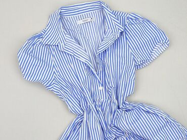 Sukienka damska w paski - Model: dzianinowa sukienka z krótkim rękawem - Wzór: biało‑niebieskie poziome pasy w stylu marynarskim - Fason: lekko rozkloszowany dół, dekolt w kształcie łódki/okrągły ...