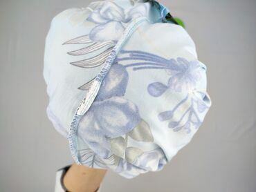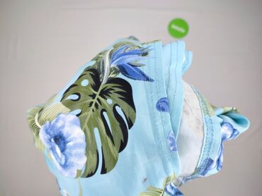 - Wzór: roślinny/tropikalny – liście monstery i kwiaty w odcieniach niebieskiego, zieleni i bieli na jasnobłękitnym tle.