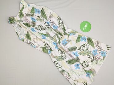 Sukienka damska z tropikalnym printem - Krój: midi, zwiewna, bez rękawów - Dekolt: łódka z małym wycięciem i zapięciem z tyłu na guzik - Talia: podkreślona elastycznym marszczeniem (gumka), które ...