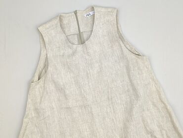 Sukienka ZARA - Model: letnia, zapinana na guziki na całej długości - Rozmiar z metki: S (EUR S / USA S / MEX 26) - Kolor: jasny beż/piaskowy - Krój: odcięcie w talii z delikatnie marszczonym dołe...