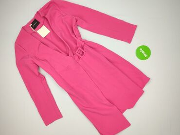Różowa sukienka typu blazer z krótkim rękawem i podwójnym rzędem guzików. Posiada eleganckie klapy, co nadaje jej formalny, a jednocześnie nowoczesny wygląd. Guziki w odcieniach brązu stanowią este...