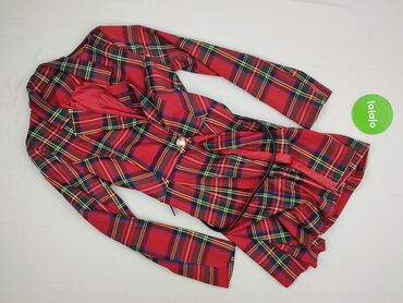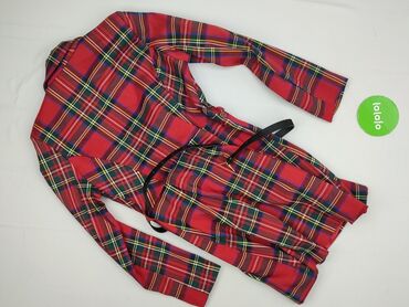 Sukienka damska Forever 21 - Krój koszulowy, zapinana na guziki z przodu - Krótki rękaw, kołnierzyk - Wzór: czerwona krata z czarnymi i białymi akcentami (styl plaid) - Delikatnie marszczona/lekko ...