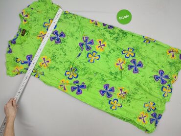 Sukienka damska z tropikalnym printem - Fason: luźna, lekko rozszerzana, długość midi (ok. kolano/za kolano – na zdjęciu z miarką ok. 95–100 cm) - Dekolt: kopertowy w kształcie V - Ramiączka: szer...