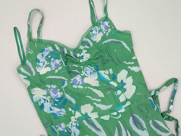 Sukienka damska w odcieniu zieleni z koronkowym wykończeniem na dekolcie. Model bez rękawów, z elastycznym pasem w talii. Wykonana z lekkiego, przewiewnego materiału, idealna na ciepłe dni. Używana...