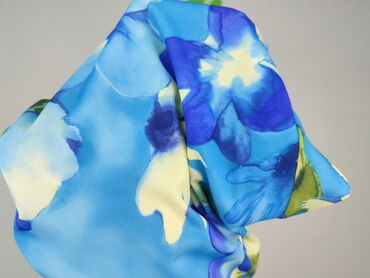 Damska sukienka maxi z krótkim rękawem, wykonana z lekkiego, zwiewnego materiału w wielokolorowy wzór kwiatowy. Dominują odcienie niebieskiego i różu, z akcentami żółci i brązu, tworząc harmonijną ...