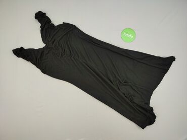 Sukienka damska maxi w kolorze czarnym - Fason: zwiewna, lekko rozkloszowana ku dołowi, długość maxi - Dekolt: szerokie ramiączka, marszczenia przy dekolcie - Talia: podkreślona szerokim, elastycz...Stan: