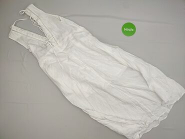 Lekka, romantyczna sukienka idealna na lato, wakacje, plażę lub letnie przyjęcia. Dzięki wiązaniu w talii można regulować dopasowanie. Zwiewna tkanina i klasyczna biel podkreślają dziewczęcy, boho charakter.