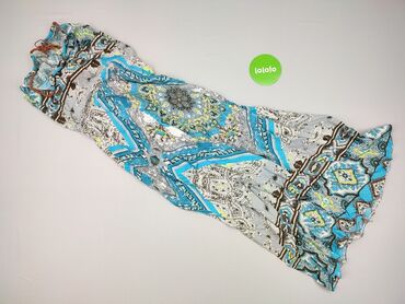 - Wzór i kolor: etniczny/boho, patchworkowy print w odcieniach turkusu, błękitu, szarości, bieli, brązu i limonki; duży, symetryczny motyw z przodu i z tyłu.