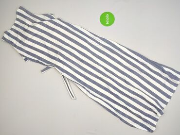 Sukienka damska maxi w paski - Fason: długa sukienka maxi, lekko rozkloszowany dół - Dekolt: okrągły - Ramiączka: cienkie, podwójne, krzyżujące się na plecach - Wzór: poziome granatowo-białe paski...