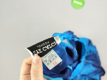 - Wzór: tie-dye/ombre w odcieniach niebieskiego z nadrukiem kwiatowym; dół z bardziej dekoracyjnym, ornamentalnym motywem