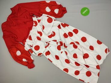 - Dół: biały materiał w duże czerwone grochy, obfita objętość.