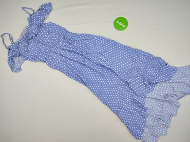 Sukienka maxi w grochy - Kolor: chabrowy/niebieski z białymi kropkami - Krój: kopertowa góra z dekoltem w serek; odcięcie w talii ze ściągaczem i wiązaniem; dół długi, rozkloszowany - Rękawy: krót...