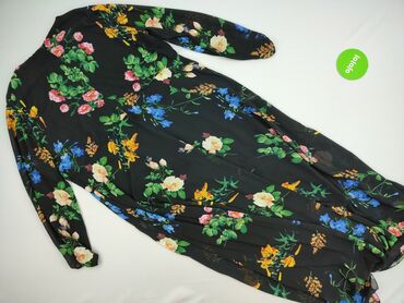 Sukienka damska maxi w kwiaty - Kolor: czarny z nadrukiem różowych róż i zielonych liści - Krój: zwiewna, rozkloszowana, długość do kostek - Dekolt: kopertowy w kształcie V - Rękawy: krótkie, luźne...