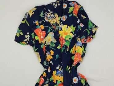 Sukienka damska z wiskozy, granatowo‑fioletowa w kwiatowy wzór. - Materiał: 100% wiskoza (lekka, przewiewna tkanina) - Rozmiar z metki: EU 48 (UK 22, E 52) - Krój: luźny, marszczony, z szerokimi r...